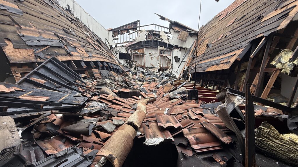 The Feb. 9 fire caused the sanctuary's roof to collapse. Photo by Gustavo Gonzalez