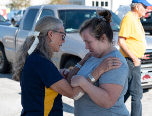 Jeffrey Morgan of Nicholls, Ga., told how his wife, daughter and two grandchildren, along with several other people from the town, had sought refuge from Helene in an old school gymnasium. When the storm hit, the roof was ripped from the building, throwing debris far and wide and destroying several vehicles parked nearby. Miraculously, no one inside the building was injured. “We hadn’t been going to church regularly,” he said, “But we’re going to start. My wife told me there was only one thing that saved them inside that building. ‘It was the hand of God,’ she said.”