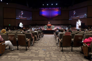 The church is not conducting baptisms during the gathering restrictions, but continues to extend membership opportunities. About 150 have graduated from new member orientation classes, and baptisms will be conducted after the pandemic restrictions ease.