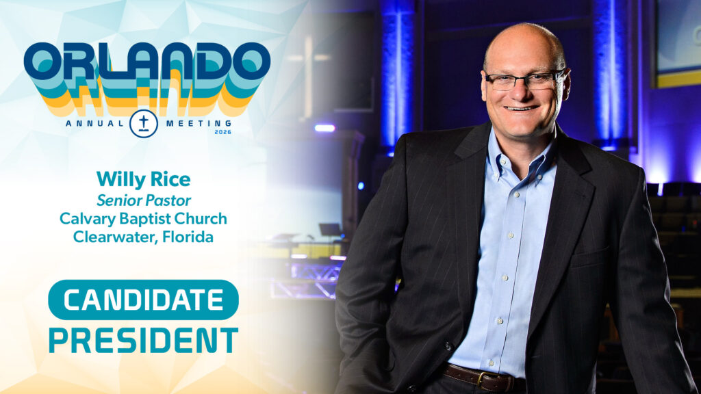 CLEARWATER, Fla. (BP) – Florida pastor Willy Rice announced his intentions to be nominated as a candidate for Southern Baptist Convention president at the 2026 SBC Annual Meeting in Orlando. In a video released Friday (Oct. 31), Rice said he is allowing the nomination based on his hope for renewal in the SBC.