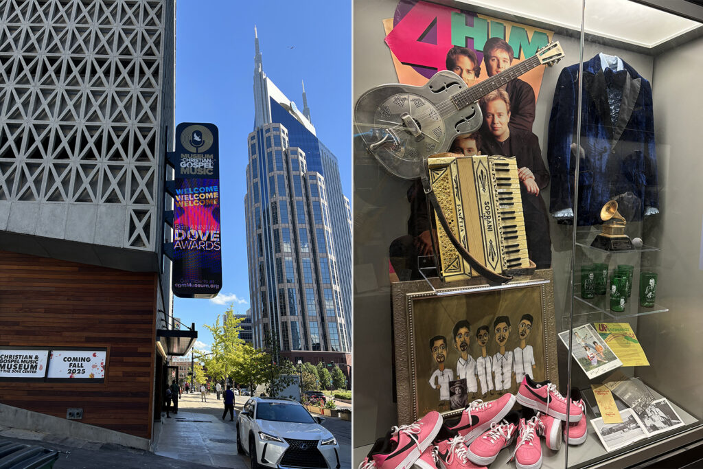 Two days later, the museum, located a block from the famed Ryman Auditorium, opened to the public. The opening comes as Christian music is experiencing a resurgence, said Jackie Patillo, president of the Gospel Music Association. Worship music, she said, has been highlighted on TV shows such as “American Idol,” and worship musicians were center stage at Charlie Kirk’s funeral, televised nationwide. The GMA’s annual Dove Awards show returned to Nashville’s downtown Bridgestone Arena for the first time in decades on Tuesday (Oct. 7).