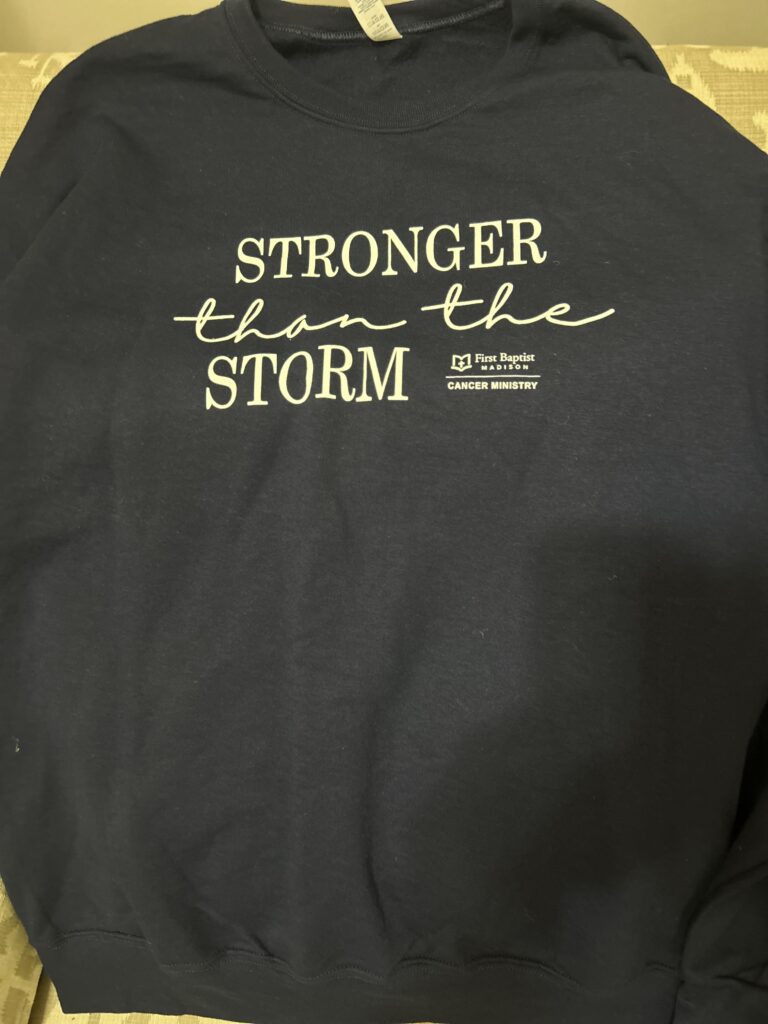 “The wonderful Prayer Warriors of First Baptist Madison Cancer Ministry are praying me through this journey. They reached out to me immediately after my diagnosis with love and special gifts,” Butler told Baptist Press. “The members are cancer patients and prayer warriors who believe in the power of prayer and know the Great Physician. Our Father heals today as He did when He walked on this earth. By His stripes, I will be healed.”