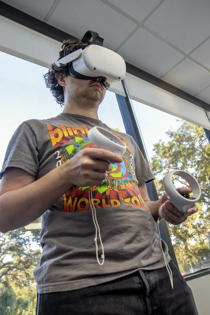 Matthew Banther lifted his VR headset and blinked at the room around him inside Calvary Church in Clearwater. This didn’t look like an average mission trip training. It looked like a group of friends hanging out, lost in their own digital universes.