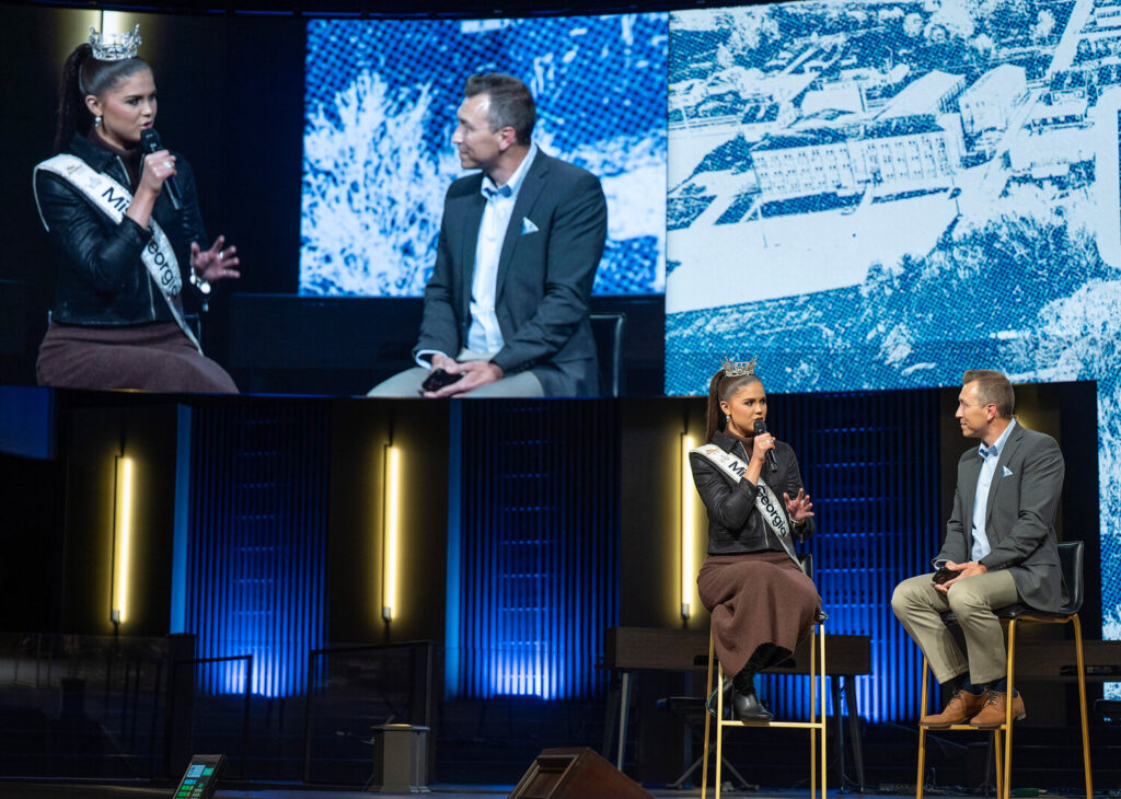 Miss Georgia Audrey Kittila speaks during an interview with Steve Browning, president of the Georgia Baptist Convention, on stage at the convention’s annual meeting in Atlanta Nov. 10. Index/Henry Durand