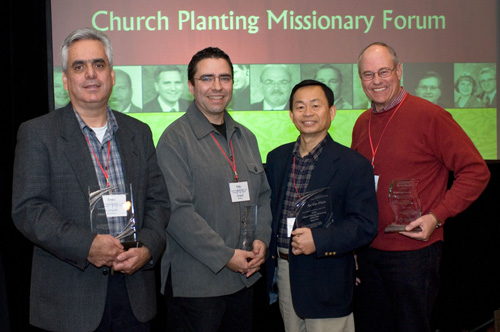 The four were honored for “outstanding contributions to church planting” before a crowd of some 250 church planters from across North America at an awards presentation climaxing the annual Church Planting Missionaries Forum, Feb. 28-March 3 in Atlanta.