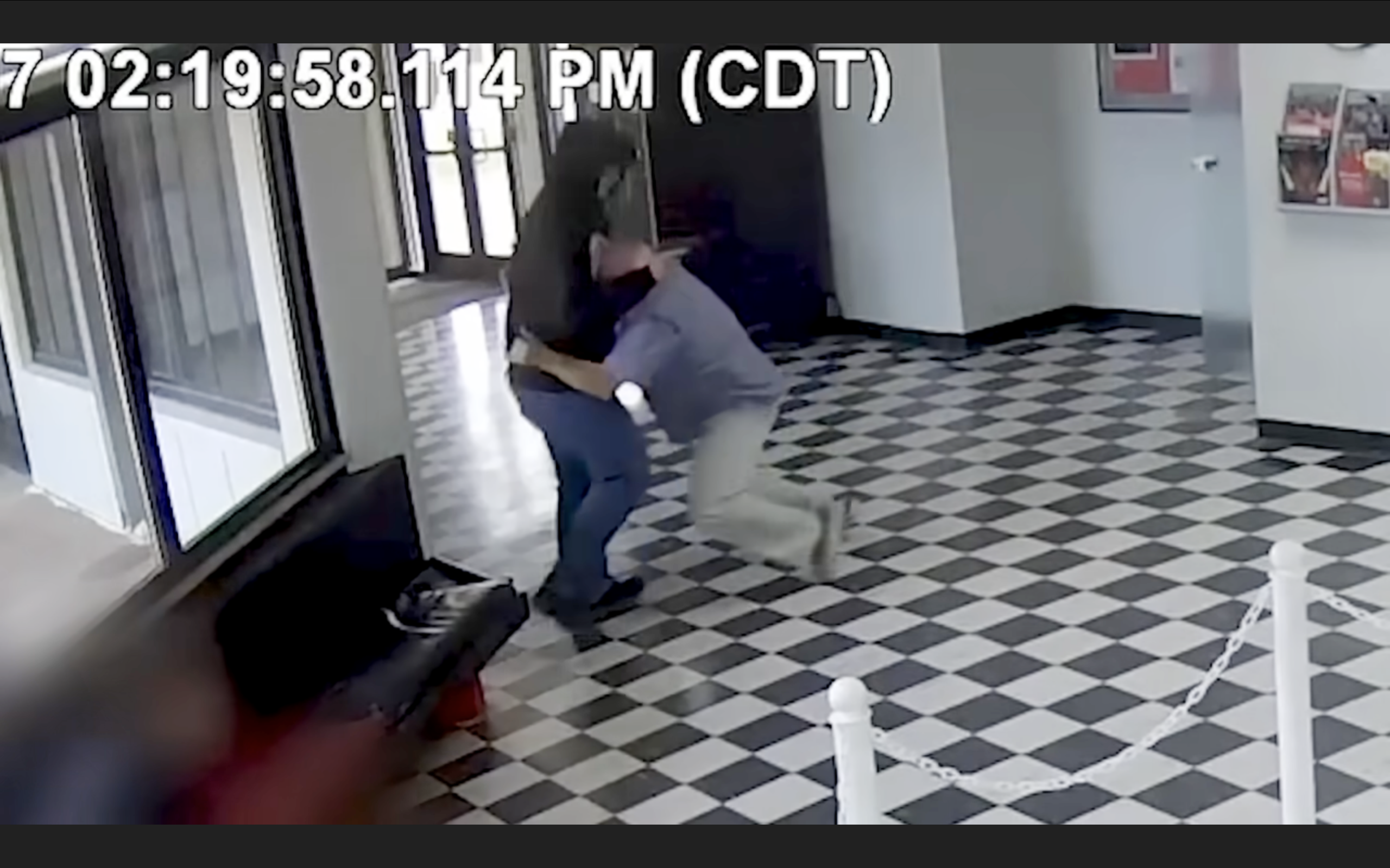 Moore tackled the gunman and disarmed him, being wounded in the process.