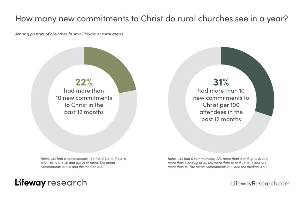 “Change can happen more slowly in rural areas, but rural churches continue to be dedicated to reaching people in their communities with the Gospel in hopes of lives being changed,” said McConnell. “New commitments to Jesus Christ reported by rural churches include both children of church members and people in the community who had not previously had faith.”