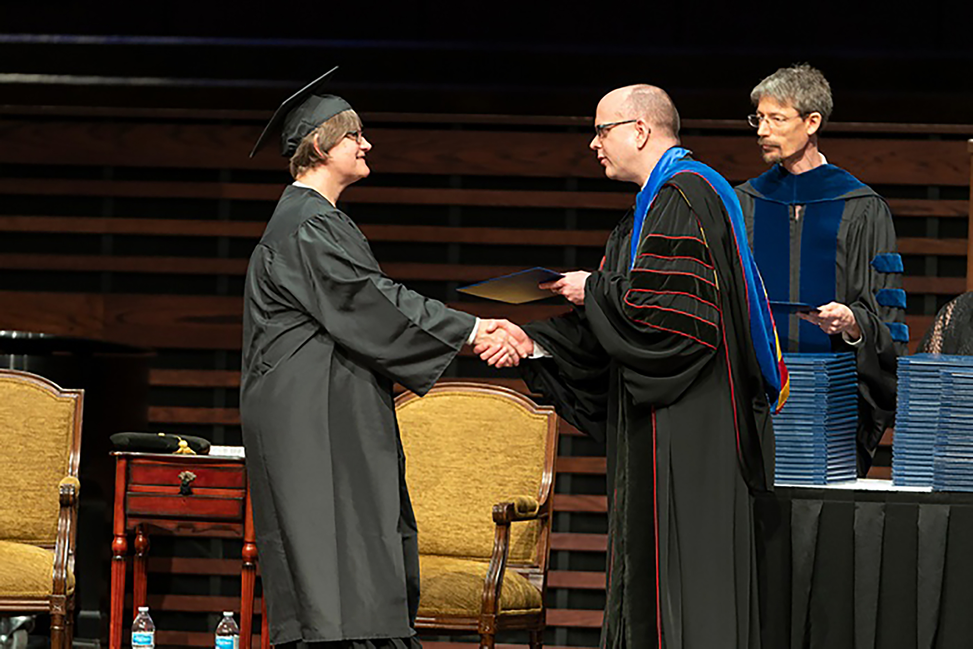 Before the conferral of degrees, provost Norris Grubbs pointed to 1 Thessalonians 5:23-24 to remind candidates that God is faithful and will be with them.