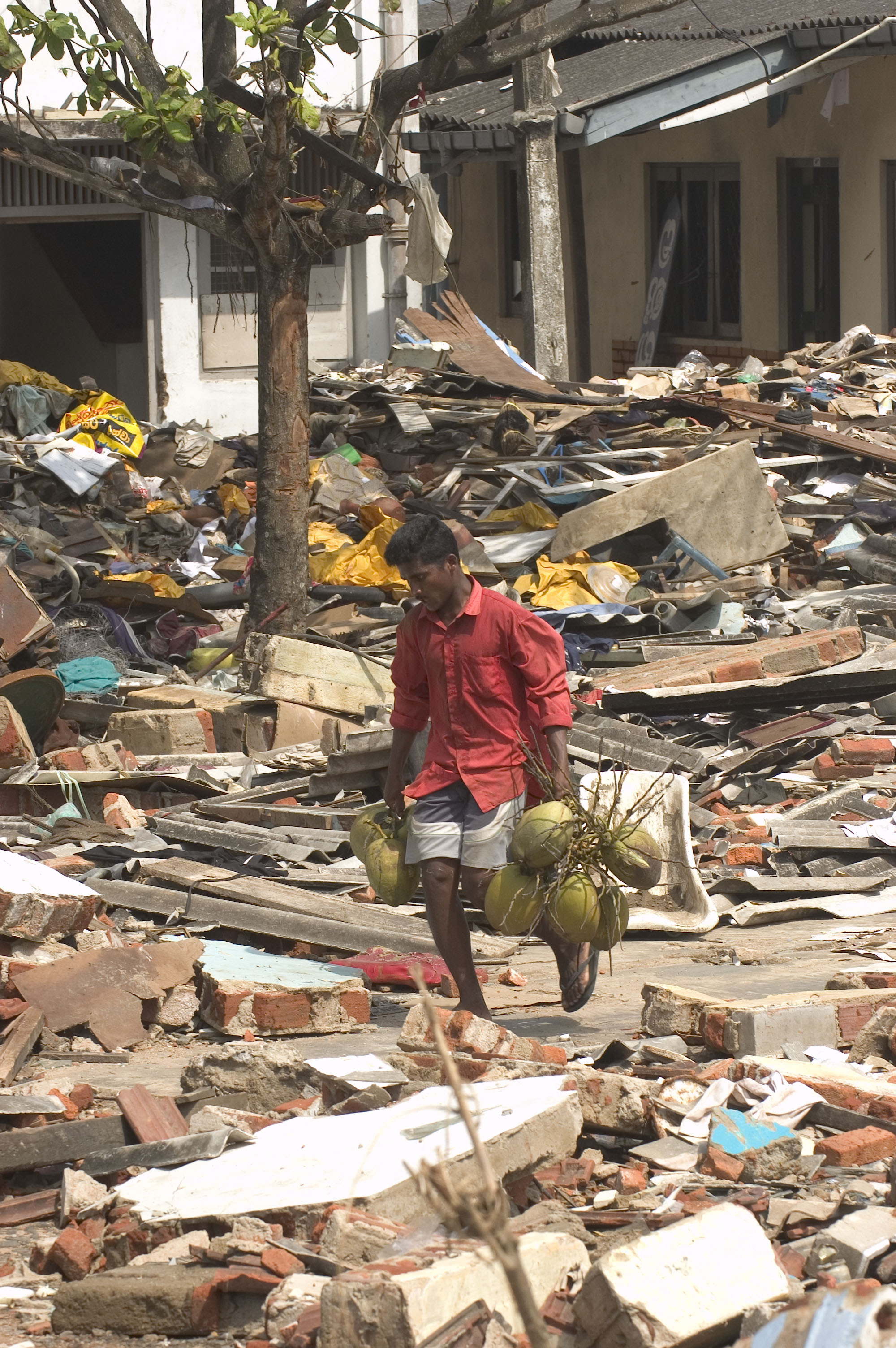 — After losing everything, some people don’t know where to begin. Others begin where they can. Pak is one of the latter. All that is left of his house is a concrete foundation, yet he has recovered a table and a mat to place on his property. All that is left of his village is rubble, but he intends to move back and resume work as a fisherman. All that is left of his family is him, so he searched until he found the bodies of his wife, mother and children in order to bury them.