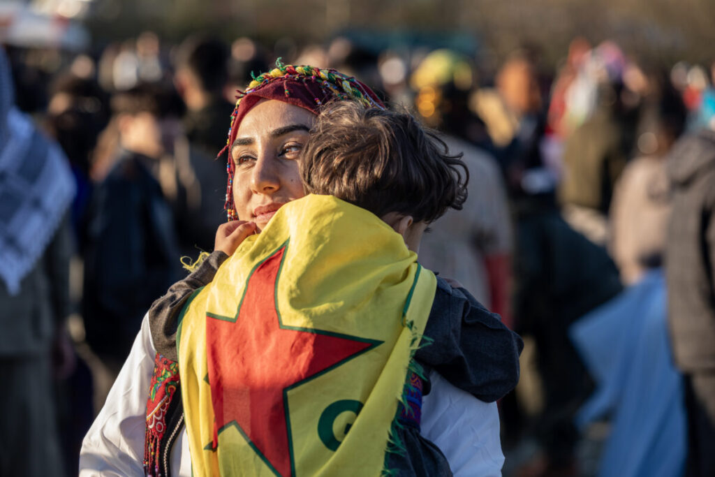 A woman holds her son during a Nowruz festival in Western Europe. Nowruz, the Persian New Year, showcases the rich cultural tapestry of Central Asian communities. Families traveled long distances through perilous environments to find safe harbors in European countries. Many women, like Anahita, experienced multiple levels of trauma on the journey. IMB Photo