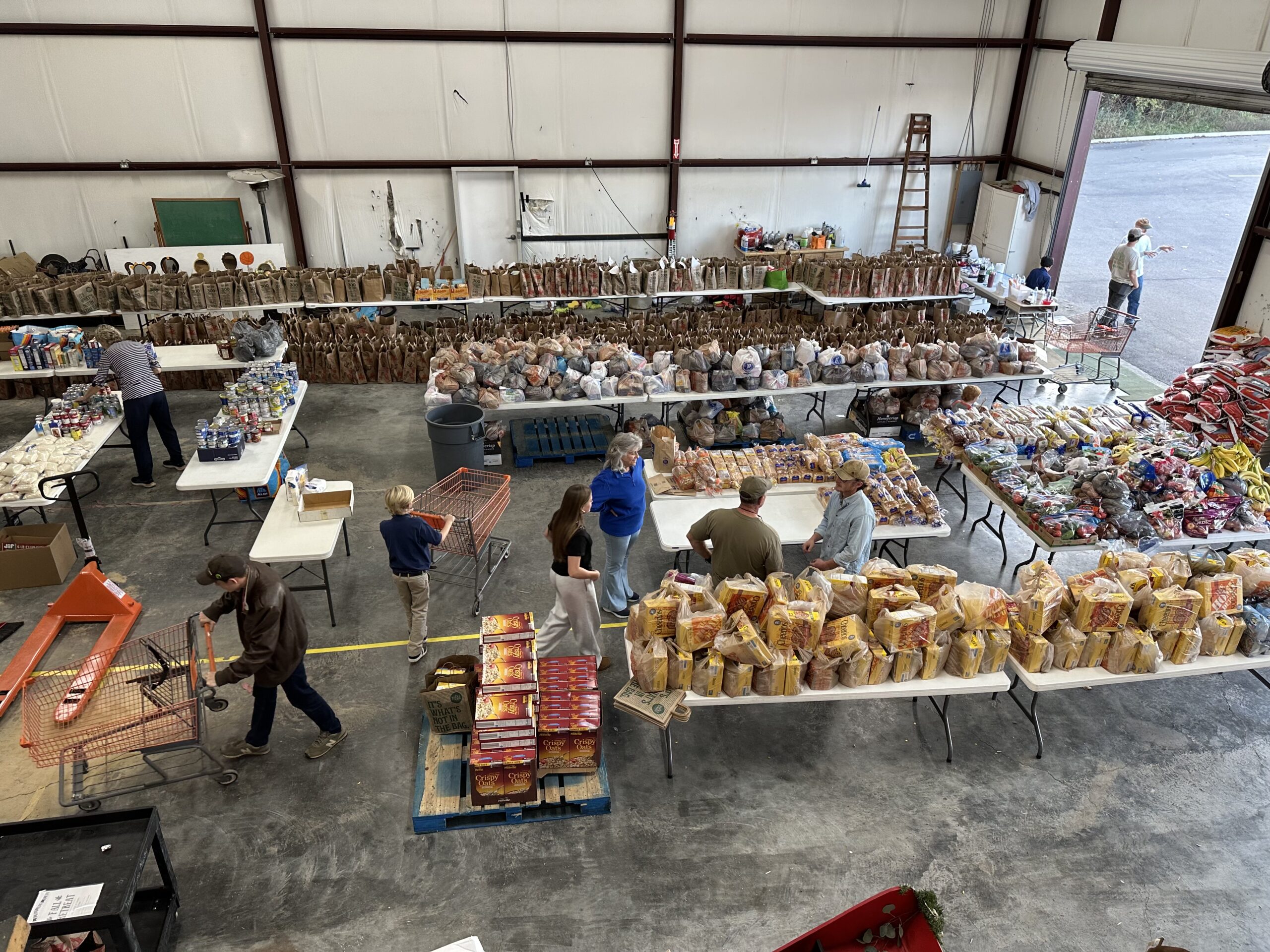 Approximately 900 families have come by this week to receive bread, milk, cereal, orange juice, vegetables, fruit, pasta and other items to go with diapers and formula. A local company provided meat. Volunteers reported seeing people opening up a loaf of bread and eating before leaving the parking lot.